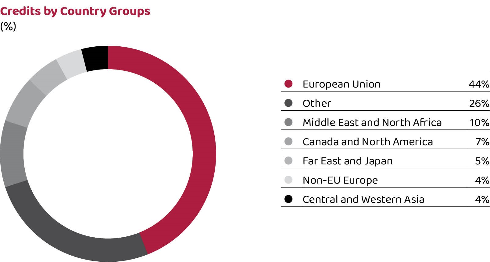 In the distribution of loans by countries to which Turkish exporters borrowing from our Bank undertake to make exportation to, EU countries lead with 44% share.