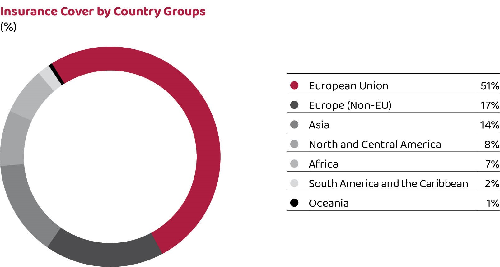In 2023, reinsurance continued to be obtained from domestic and overseas companies for 60% of commercial and political risks (pertaining to OECD non-member countries) assumed within the frame of receivable insurance programs.