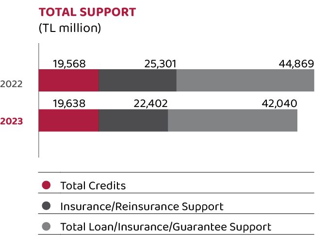 Lending processes were integrated with İhracatı Geliştirme A.Ş. (İGE), which was established to provide guarantee support to our exporters, thus increasing the diversity of guarantees on offer.