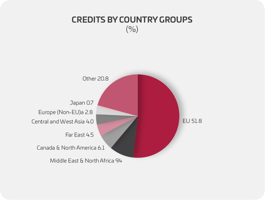 In the distribution of loans by countries to which Turkish exporters borrowing from our Bank undertake to make exportation to, EU countries lead with 52% share.