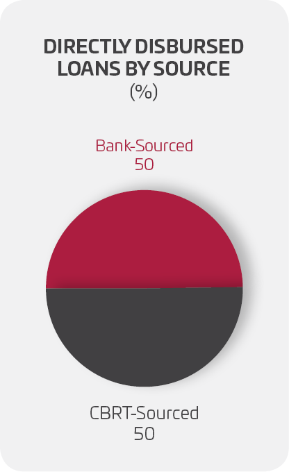 • directly disbursed loans by 96%, and loans disbursed via intermediary banks by 4%,