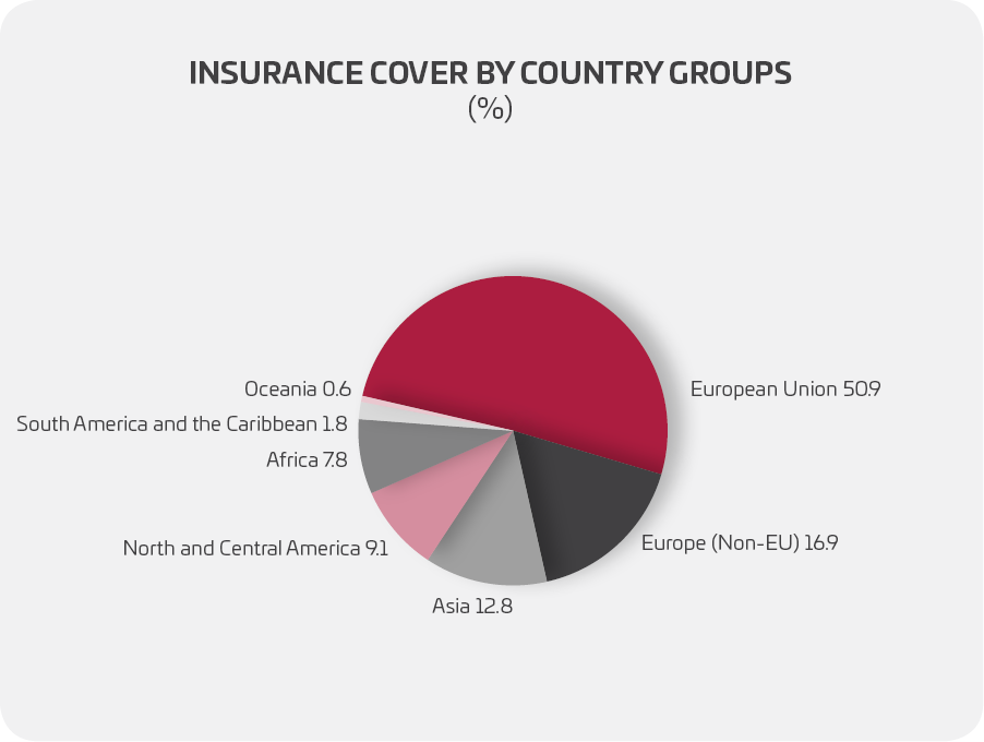 Through its insurance programs, the Bank provides insurance coverage for exports to countries covered under the insurance against losses arising from commercial and political risks arising from the importer firm and importer’s country. In addition, domestic receivables of exporters are protected against commercial risks also through domestic credit insurance as well as export credit insurance.