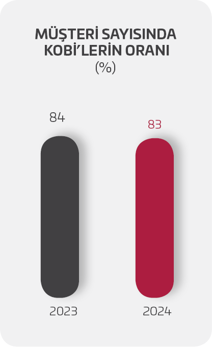 Kredi uygulamalarında KOBİ’lere öncelik tanınmış, Türk lirası cinsinden krediler ağırlıklı olarak KOBİ’lerin finansmanı için kullanılmıştır. KOBİ statüsündeki firmaların kredi taleplerine verilen öncelik, sağlanan ilave ek kaynak ve vade uzatım destekleri sonucunda 99,3 milyar TL ve 2,9 milyar ABD doları olmak üzere toplamda 5,8 milyar ABD doları tutarında KOBİ desteği sağlanmıştır. 24,1 milyar ABD doları olarak gerçekleşen toplam destek rakamı içerisindeki KOBİ payı %24,22 olmuştur.