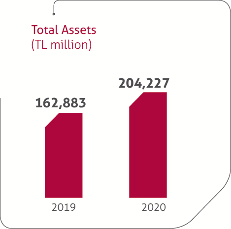 Total assets, which grew by 25.4%, reached 204.2 billion TL by the end of 2020.