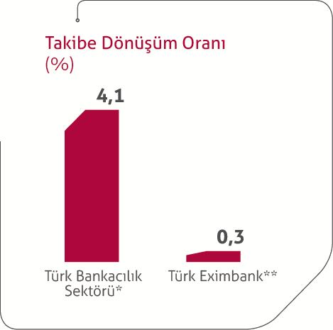 Türk Eximbank’ın kredilerinin takibe dönüşüm oranı %0,3 ile sektör ortalamasının çok altındadır..