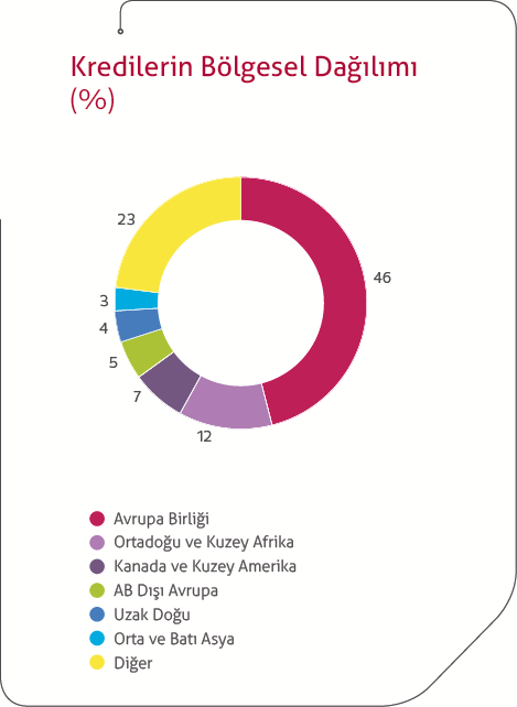 Bölgesel dağılımda ise %67‘lik pay ile Avrupa (Avrupa Birliği ve AB dışı toplamı) başta gelmekte olup ikinci sırada %10’luk pay ile Batı ve Orta Asya, üçüncü sırada %8’lik pay ile Kuzey ve Orta Amerika bulunmaktadır.
