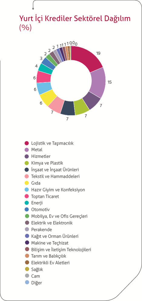 Kısa vadeli kredilerin sektörel dağılımında %23 pay ile lojistik ve taşımacılık sektörü başta gelmektedir. Kredilerin ülke gruplarına göre dağılımında ise %45,5’lik bir oran ile AB ülkeleri ilk sırada yer almaktadır.