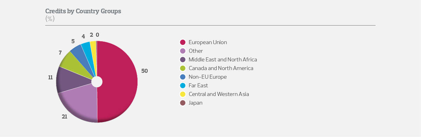 In this context, in line with the target of expanding the network of international banks and covered countries, negotiations are ongoing for potential project and trade finance deals within the frame of the credit lines allocated to three multinational banks (the African Export-Import Bank, ECOWAS Bank for Investment and Development (EBID), and the Eastern and Southern African Trade and Development Bank), as well as commercial banks operating in various countries. The cooperation developed with the multinational banks operating in Africa will allow our Bank to cover a substantial portion of the countries in that continent.