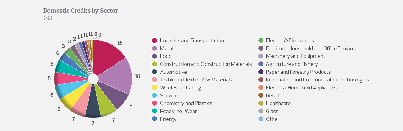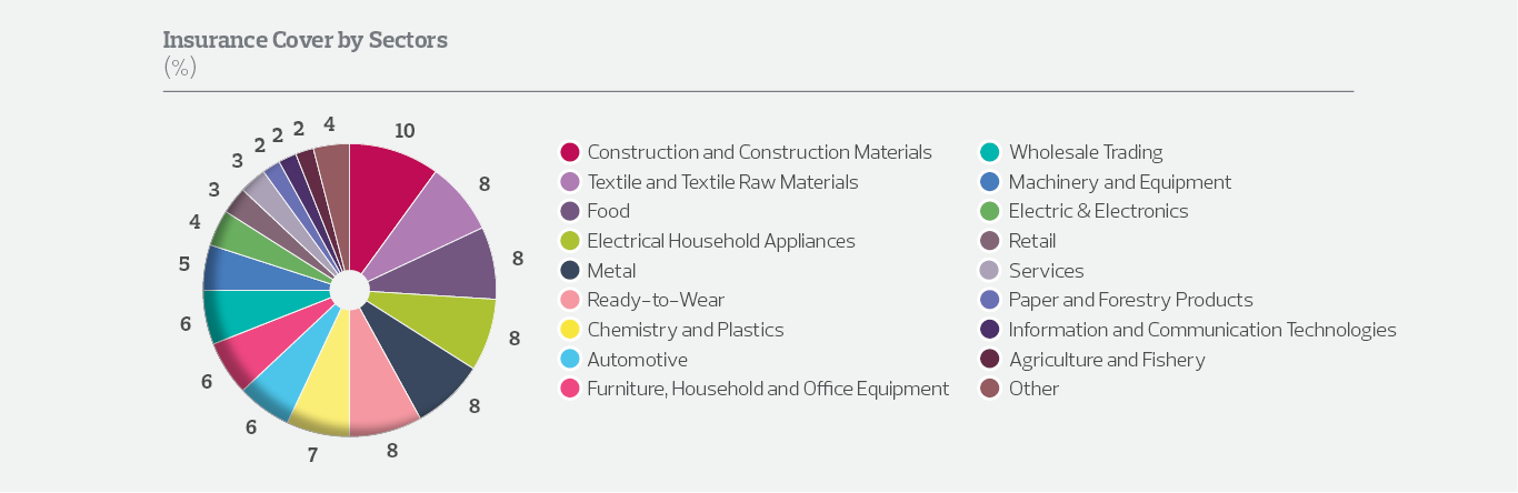 In the sectoral distribution of insured shipments, construction and construction products industry took the lead with 10% share, followed by textile and raw materials, food, electrical household appliances, metal, ready-to-wear and garment industries with 8% share each.