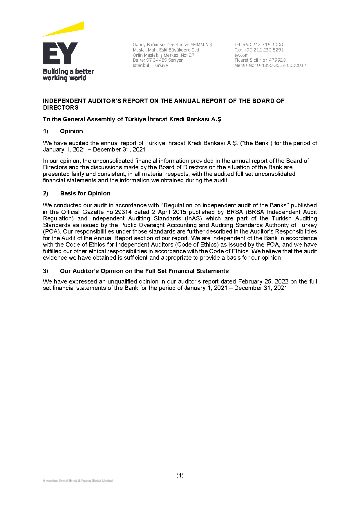 Publicly Announced Unconsolidated Financial Statements and Related Disclosures together with Independent Auditor’s Report at 31 December 2021