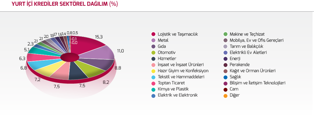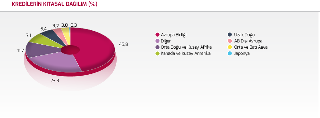 Kredilerin ülke gruplarına göre dağılımında %46’lık bir oran ile AB ülkeleri ilk sırada yer almaktadır. Kredilerin sektörel dağılımında ise %15 pay ile lojistik ve taşımacılık sektörü başta gelmektedir.