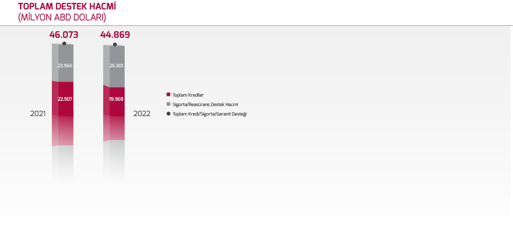 2022 yılında Kısa Vadeli İhracat Kredi Sigortası, Kısa Vadeli Yurt İçi Kredi Sigortası ve Spesifik İhracat Kredi Sigortası kapsamında toplam 25,3 milyar ABD doları tutarında sevkiyat sigortalanmıştır.