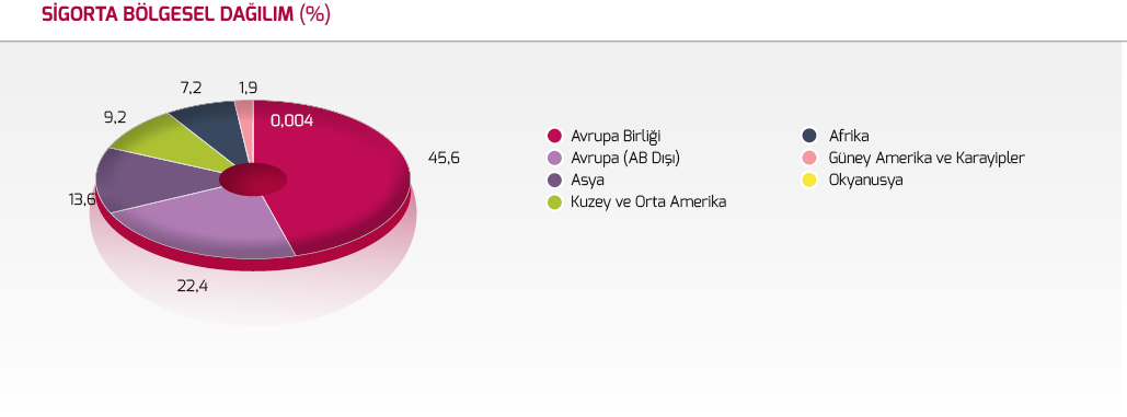 Bölgesel dağılımda ise %68’lik pay ile Avrupa (Avrupa Birliği ve AB dışı toplamı) başta gelmekte olup ikinci sırada %14’lük pay ile Asya, üçüncü sırada %9’luk pay ile Kuzey ve Orta Amerika bulunmaktadır.