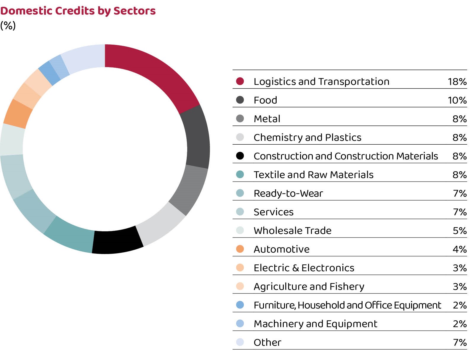 Logistics and transportation sector took the lead with 18% share in the sectoral distribution of loans.