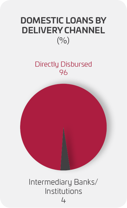 • directly disbursed loans by 96%, and loans disbursed via intermediary banks by 4%,