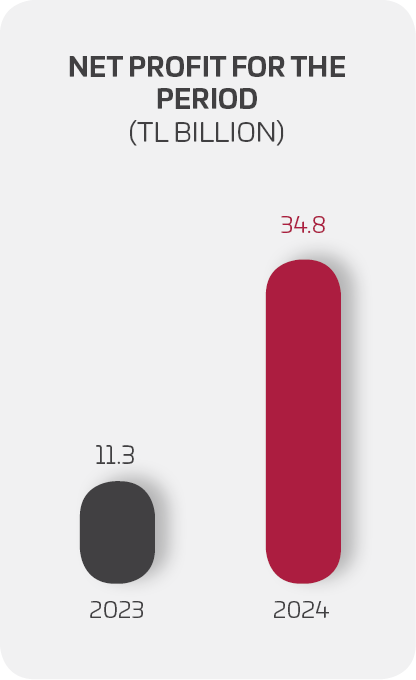 TL 34.8 billion was booked in net profit for the period at year-end 2024.