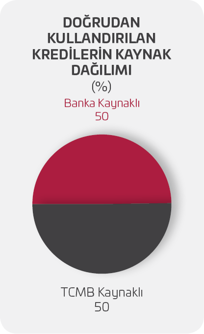 Kredi uygulamalarında KOBİ’lere öncelik tanınmış, Türk lirası cinsinden krediler ağırlıklı olarak KOBİ’lerin finansmanı için kullanılmıştır. KOBİ statüsündeki firmaların kredi taleplerine verilen öncelik, sağlanan ilave ek kaynak ve vade uzatım destekleri sonucunda 99,3 milyar TL ve 2,9 milyar ABD doları olmak üzere toplamda 5,8 milyar ABD doları tutarında KOBİ desteği sağlanmıştır. 24,1 milyar ABD doları olarak gerçekleşen toplam destek rakamı içerisindeki KOBİ payı %24,22 olmuştur.