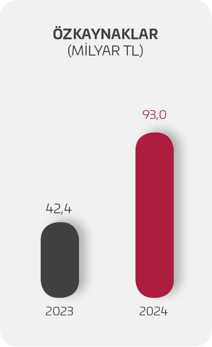 93,0 milyar TL’ye yükselen özkaynaklardaki artış %119,2 olarak kaydedilmiştir.