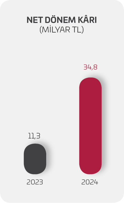 Net dönem kârı 2024 yıl sonunda 34,8 milyar TL olmuştur.